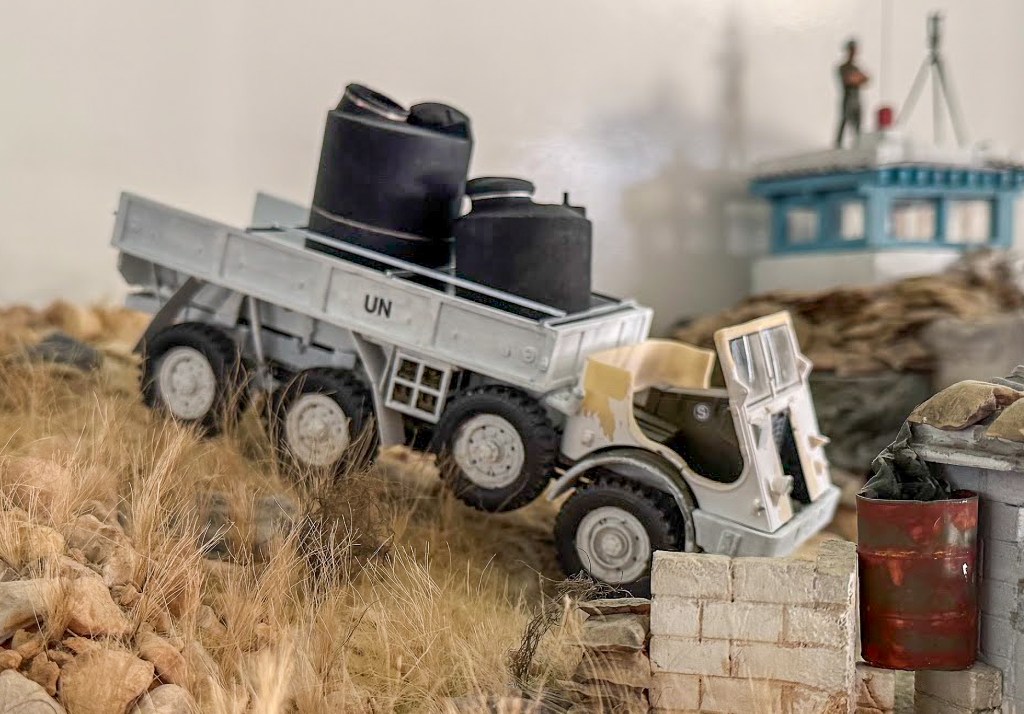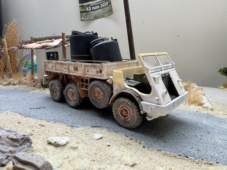 Een paar maanden heeft het prachtige model in zijn showcase mogen stralen in de vitrinekast maar nu is de tijd aangebroken om te worden zoals hij destijds in Libanon rondreed. Dat er tussen dit statische model en de werkelijkheid een beetje verschil was zal niemand verbazen. De hieronder geplaatste foto’s zeggen al genoeg.