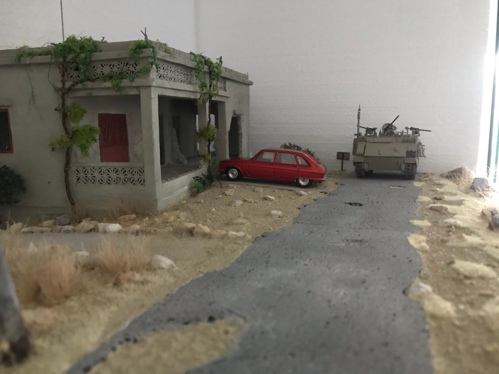 De komende weken gaat er gewerkt worden aan wat meer interieur zaken zoals tafels, wasgelegenheid en wat met planken in elkaar gezette kasten. Voor het klein materiaal zoals voedsel, keukengerei, blikje eten en dat soort prullaria is nog geen voldoende valuta op de rekening. Wel gaat het aanbrengen van vegetatie in het diorama gestaagd door. Zo is er een tijdje geleden, op proef, een doosje met takjes van Dioramapresepe binnengekomen. Binnenkort maar eens proberen of dit verwerkt kan worden.