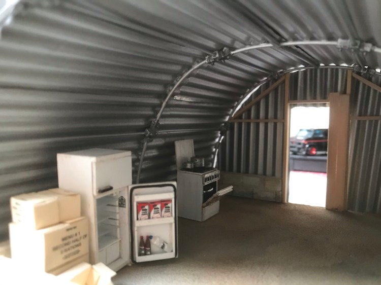 Eindelijk is ook het gasfornuis gereed en heeft die samen met de koelkast wat weathering gehad. De koelkast een klein beetje en het fornuis is best smerig te noemen. Eigenlijk waren wij destijds best wel schoner dan dat het er in het diorama uitziet 😁. Alleen was dit op foto’s van derden wel anders en zag dat ding er ranzig uit. Tja, de ene militair was de ander niet.