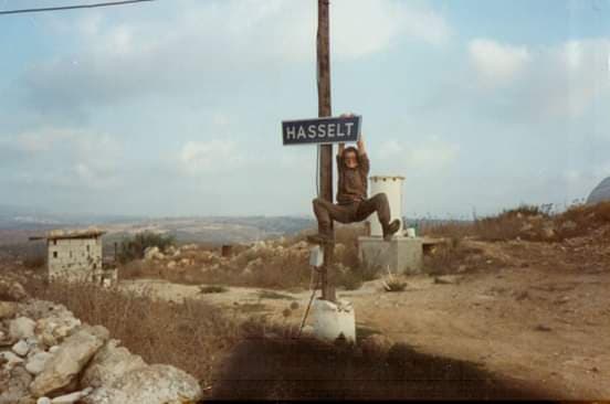 Henk was met verlof in zijn woonplaats Hasselt, toen hij het heldere idee kreeg om aan de stadsgrens (kan nooit ver van zijn huis zijn geweest) een plaatsnaambord te ‘lenen’. Bij navraag bleek hij het ook nog eens gratis te kunnen laten verzenden naar post 7-2. Lang leven de kosteloze veldpost van de KL. Die post ging (Bij hoge uitzondering) zo snel dat het bord al was gearriveerd voordat hij terug was in Libanon. Hoe blij was hij wel niet toen hij bij aankomst zag dat zijn maatjes het bord reeds hadden opgehangen!