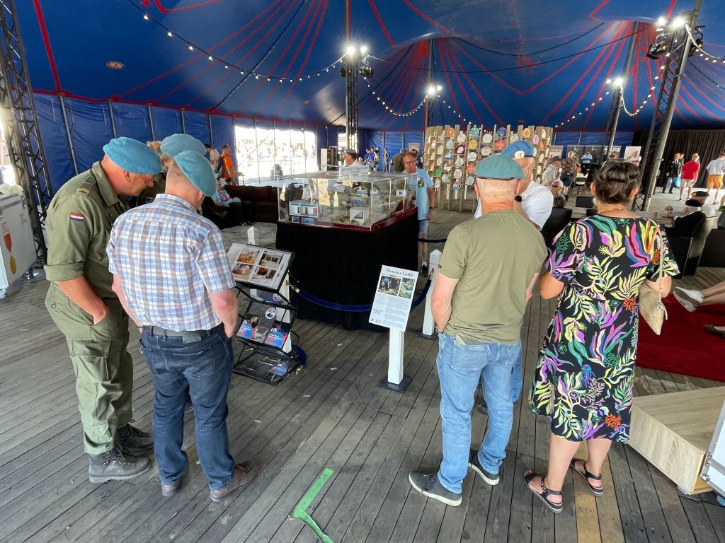 En weer terug naar het ‘oud-groen’ om vervolgens veteranen te verblijden met bierbonnen. Tussendoor gezellig met Saskia en de kids een ‘Blauwe Hap’ gegeten en wat voertuigen gekeken maar mijn hoofdtaak was die bij het diorama. En ik had de enorme aanloop al genoemd geloof ik maar bij die aanloop kwamen ook veel oude maatjes voorbij en enkele VVL reisgenoten van de terugkeerreis waren van de partij!
